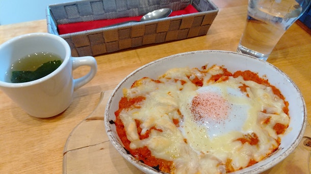 トマトベースのスパイスで煮たカレーがベースのようですね。