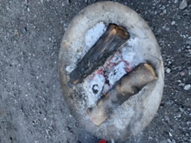 写真の焚き火はほんの10秒くらいの間に撮った写真です。上の写真では炎がたっていませんが、左の写真では炎がたっています。ほとんど同じ材料だけです。