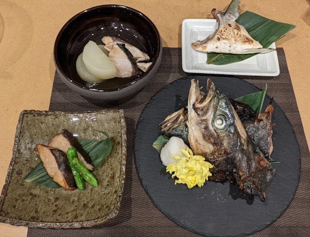 出汁のアラを煮直していくうちに、味噌汁みたいな見た目になりました。コクたっぷりで、とても美味しかったです。