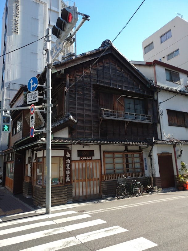 遊郭の跡形はないが、路地裏にはレトロな建物も残っている。