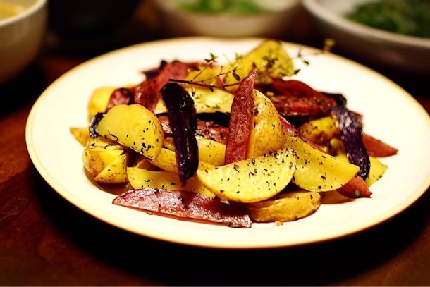 畑で掘ったジャガイモを、すぐにその場で料理して美味しく食べる。