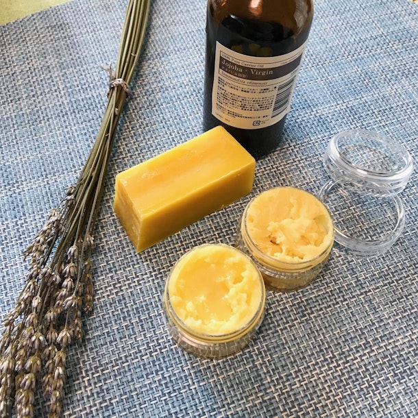 ミツロウとホホバオイルを使っての手作りハンドクリームです。