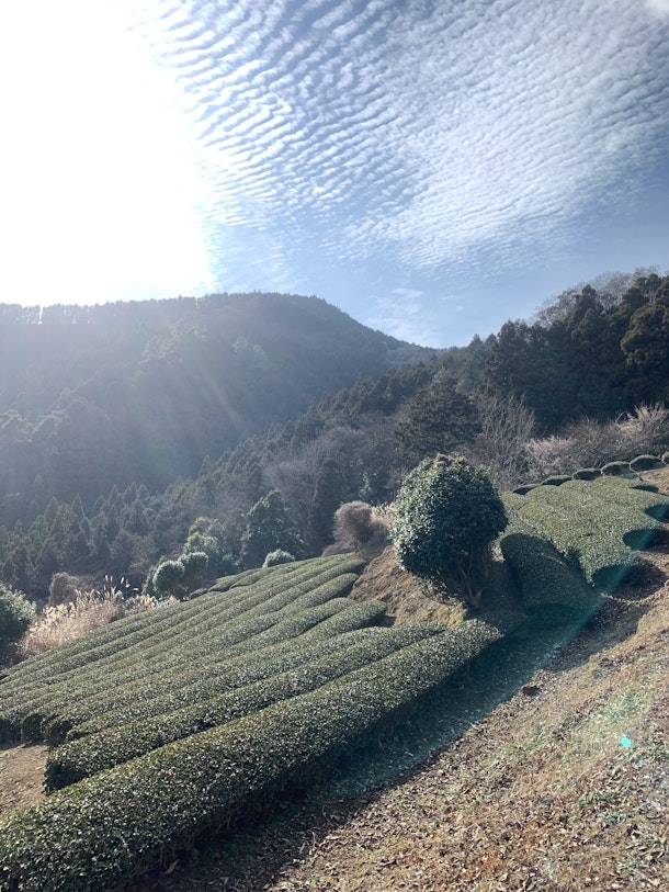 結構な山の中に突然広がる茶畑。