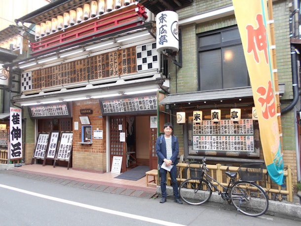 梅雨の合間、7月9日は16時からタビカ街歩き「新宿は万葉から遊女の街!二丁目、歌舞伎町に遊郭赤線跡で風俗の変遷を実感 https://tabica.jp/travels/3423 」を開催し、男性1人が参加されました。新宿駅の東側エリアを案内です。①新宿末広亭です。