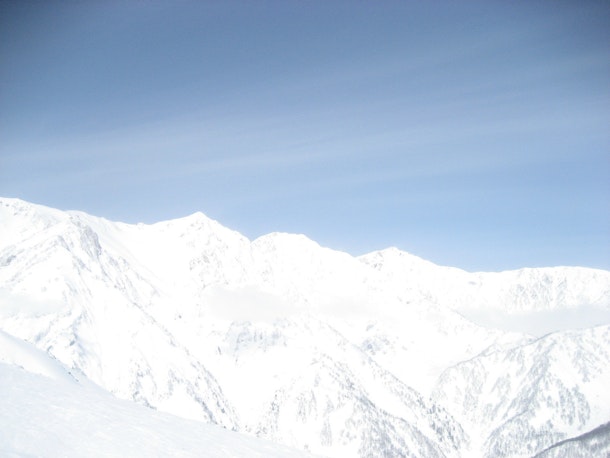 写真は白馬三山。これが見れると気分がいい。映画「銀色のシーズン」(主演:瑛太さん)の冒頭の景色です。