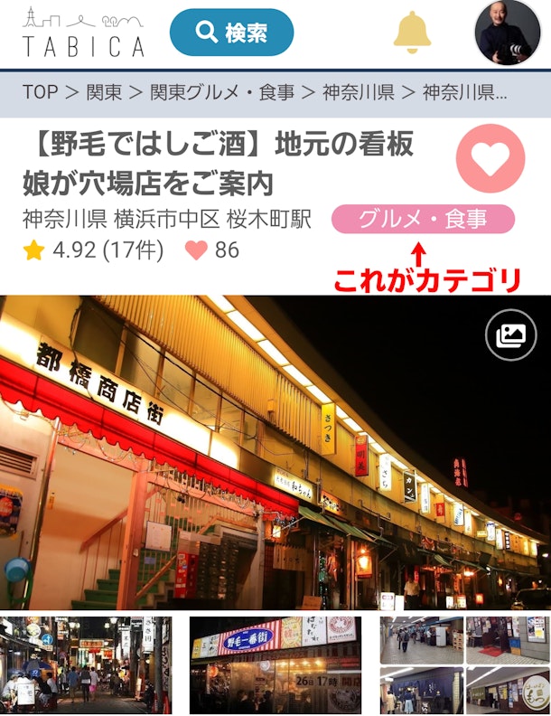 TABICAにホスト登録して間もなく3年なのですが、つい先日まで、体験に参加したことがありませんでした。登録直後に地元千葉の体験に申し込んだもの、雨天中止になってしまい、それ以後、ピンと来る体験がなかったのでした。そんな私が、横浜市野毛でTABICAデビュー! 最近、Twitterで「#TABICA」で検索して、【野毛ではしご酒】体験を開設しているホストさんを見つけたのです。
