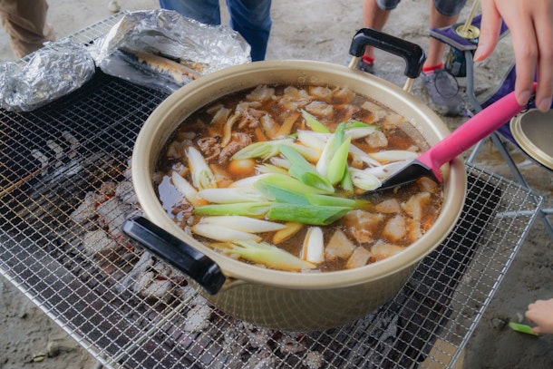アウトドアでの食事で、話も弾みます。