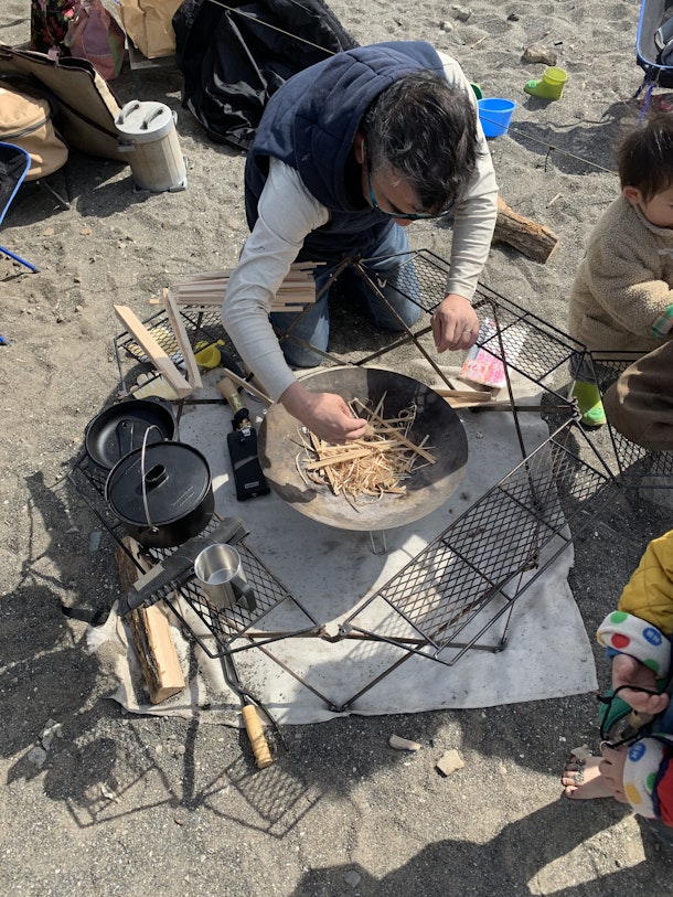 それでも、お父さん、お母さんが薪をくべるところを見て理解したようで、1番小さなゲストさんも焚き火に薪をくべていてびっくり❗️(写真を撮り損ねました。)あらためて、子供の順応性はすごいなーと感じました。お兄ちゃんはマッチにハマってしまったようで、何回もマッチを練習していました。最近はなかなか使うチャンスもありませんものね。