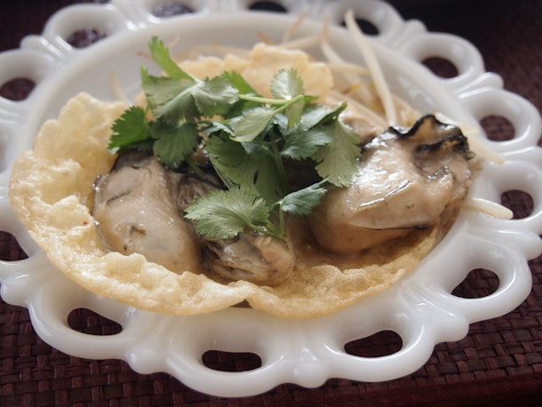で、 牡蠣の季節なので かりかりの牡蠣お好み焼風、 ホーイトード、1人1枚作りました。