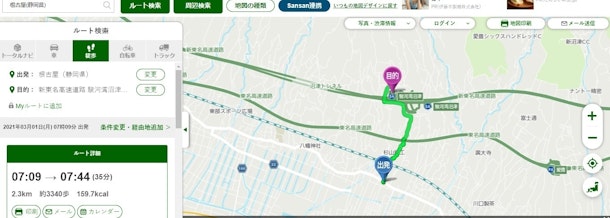 35分、2.3km、約3340歩、159.7kcal 到着最短で10:10