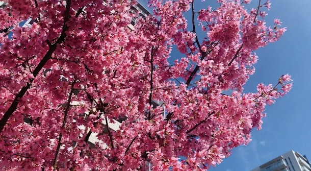 花びらが勢いよく吹く春風で
