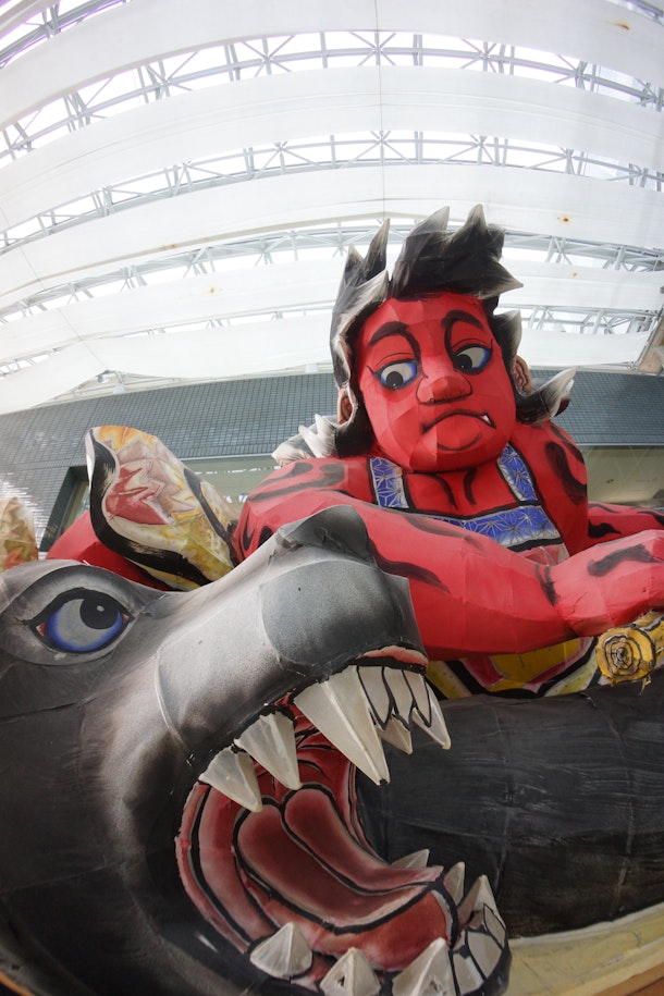 南足柄市市役所の中庭の片隅に、なぜかポツンと、金太郎さんのねぶたが。
