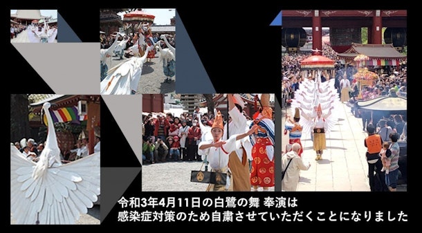 浅草寺の「白鷺の舞」は京都の正統を基本に慶安縁起の遷座供養祭礼行列を復元したもので、