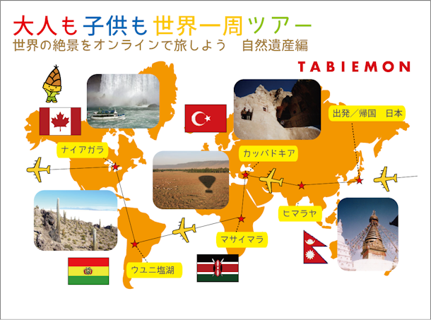 地球の広さを感じる5つの絶景(ヒマラヤ山脈、カッパドキア、マサイマラ国立保護区、ウユニ塩湖、ナイアガラの滝)へご案内します。