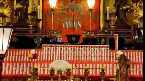 いつもは白いお札が示現会の時は赤になっています。