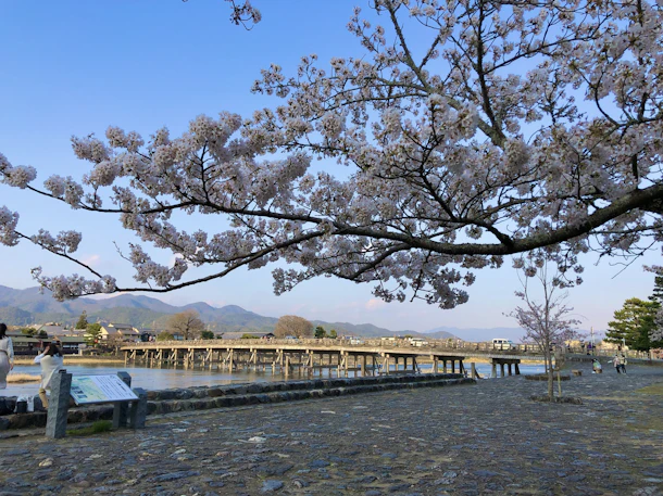 夕暮れ時に通りかかった嵐山も見頃を迎えていました🌸