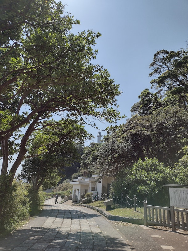 樹々の向こうに観音崎灯台が見えます、わかりますかね?