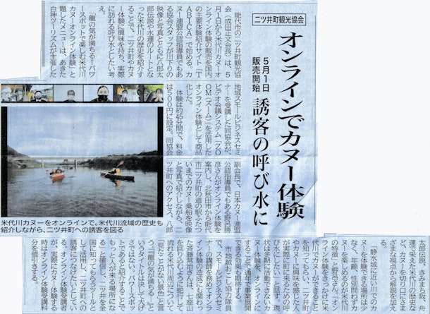 今日(2021/4/30)の北羽新報で「オンラインでカヌー体験」が記事になっています。