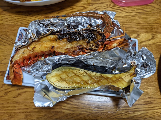 フランス産のミナミイセエビを半身をテルミドールに、半身を鬼殻焼きにしました🦐