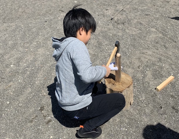今回はゲストさんによる焚き木づくりもあり、