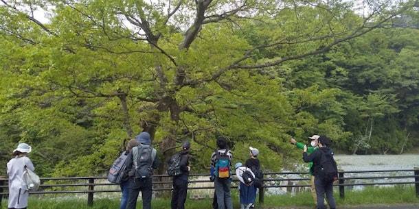 子ども達と一緒に水源林の植生ややどりきの自然を散歩しながら見て歩きました。
