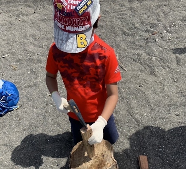 今回のマイ箸づくりでも、小学生男子に人気なのは手斧!