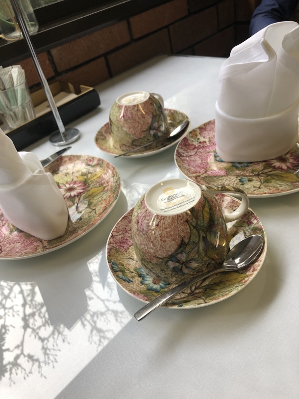 予約した席には、こんな素敵なティーカップが。さ~来い糖質!!どっからでもかかってこい🤜
