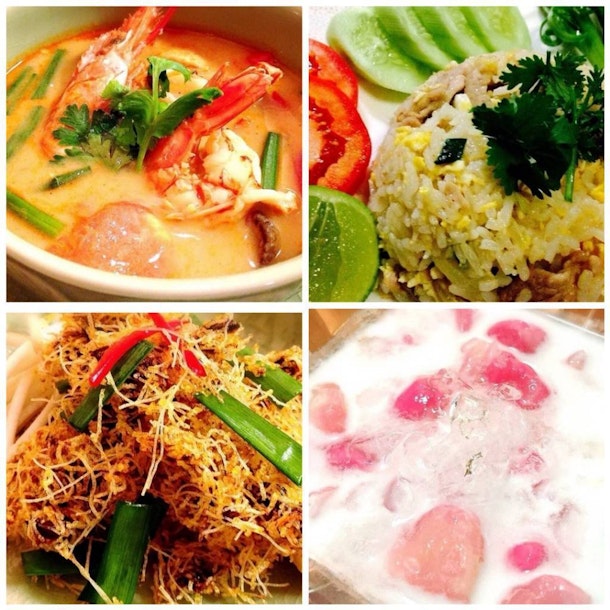 甘酸っぱいソースで和えた揚げビーフンはトムヤムクンの辛さを和らげるので、相性抜群のメニューです。