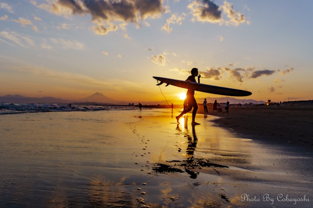 有名な写真ではユウニ塩湖の写真ですが、湘南の写真家の間では有名な場所は鵠沼海岸東海岸。