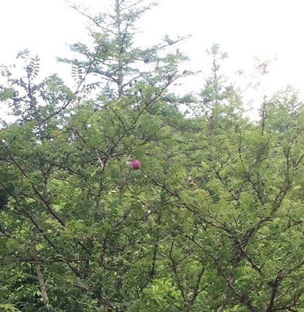 あっという間に開花して薄いピンク色に。野生だからシングルフラワーです。花弁を数えると5枚。オシベはたくさん。花が作られる過程のちょっとした遺伝子信号の違いでオシベができたり花弁ができたりします。その工夫はすごいなと思います。園芸品種としては花弁の多い方が断然人気です。一方、野生植物が子孫を残すには広告塔としての花弁も必要ですが、花粉をつけているオシベの方がより重要で、必要不可欠。だからサンショウバラは豊富な花粉をつけたオシベを見せつけるように咲きます、夕方には萎れてしまうのですけれどね。