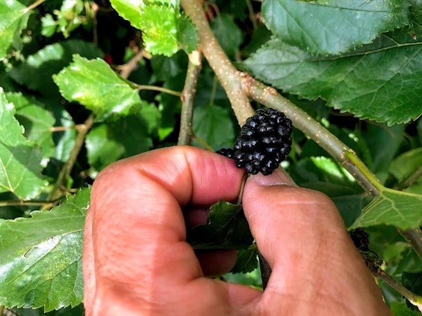 帰りには手土産に大桑の実やオカワカメ、バジル
