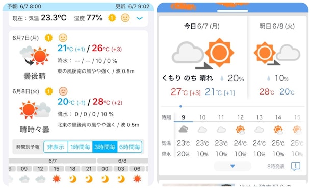 私は朝起きると新聞の全国予報をまず見て、さらにスマホのお天気アプリで居住エリアの予報、特に降水確率をチェックしています。
