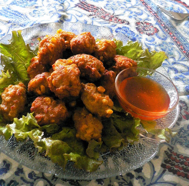 今月の超本場級タイ料理レッスンでは、トウモロコシと豚ひき肉を まとめて揚げる、さつま揚げ風が 人気です。