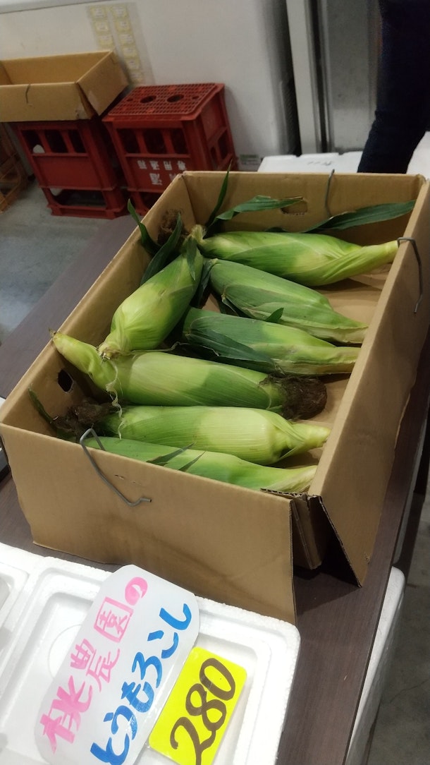 「このトウモロコシめちゃくちゃ甘いんですよ。山梨の桃農家のつくったトウモロコシで・・・」