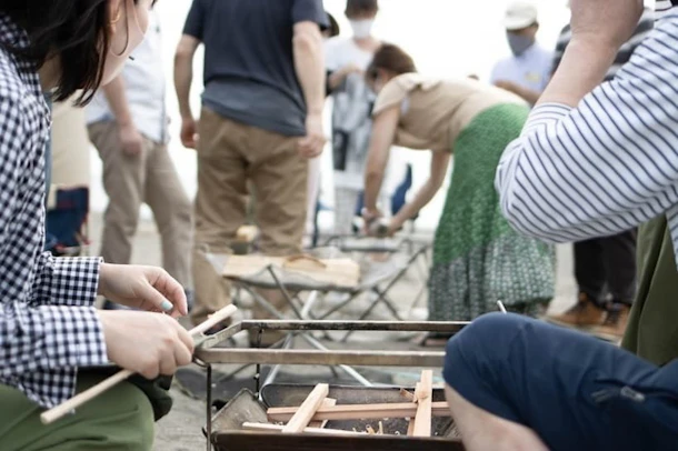 アウトドア仲間のみなさんでの焚き火体験