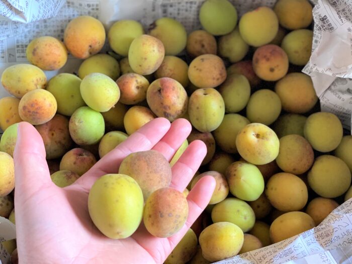 梅の実って熟すと黄色くなるんです。そして、すっごく良い香り!梅の花の香りは昔から和歌に詠まれたりと風情を感じさせてくれますが、熟した梅は杏子のような爽やかで甘い香り。