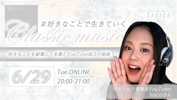 今回は普段会社員としてフルタイムで働きながら、趣味のクラシックをYouTubeで配信し、じぶんのペースで好きなことを生活の一部に取り入れて生きている、大人気YouTuber「厳選クラシックチャンネル」nacoさんをお招きします!
