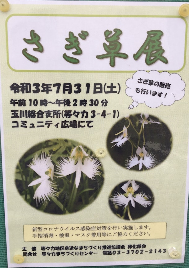 7月31日等々力地区さぎ草展のチラシです