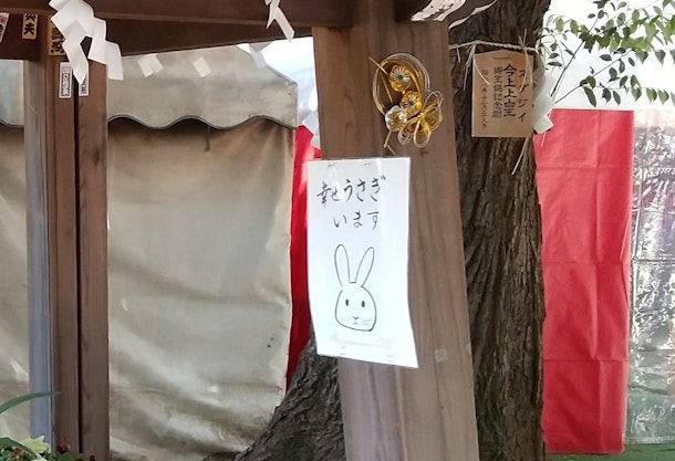ほんわかした絵「幸せうさぎいます」