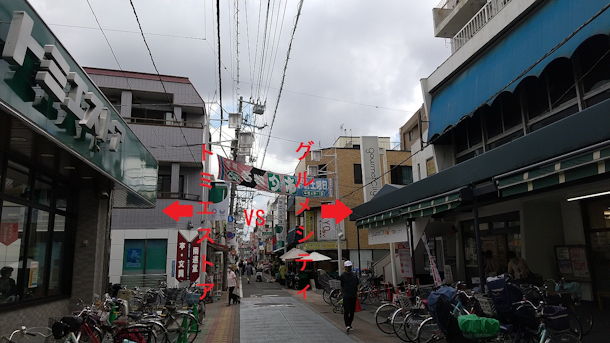 通り一つ隔ててスーパーが2つ並び立っており、ガチンコ勝負している-。
