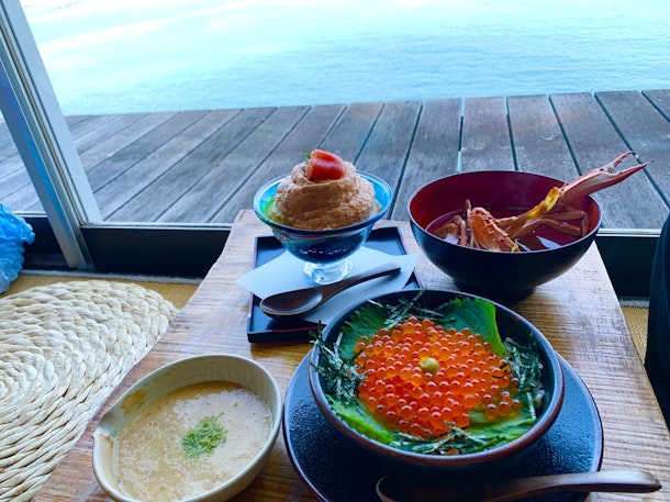 海を見ながら食べる麦とろ丼に、お店のおじちゃん達のトークも面白く、エンタメ盛りだくさん✨