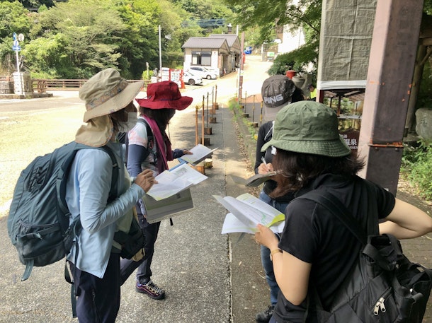 伊勢原駅でホストさんと合流し、参加者の自己紹介を行ったあと、一日のスケジュールと森林セラピーに関する知識をご説明いただき、バスで大山に向けて出発!!