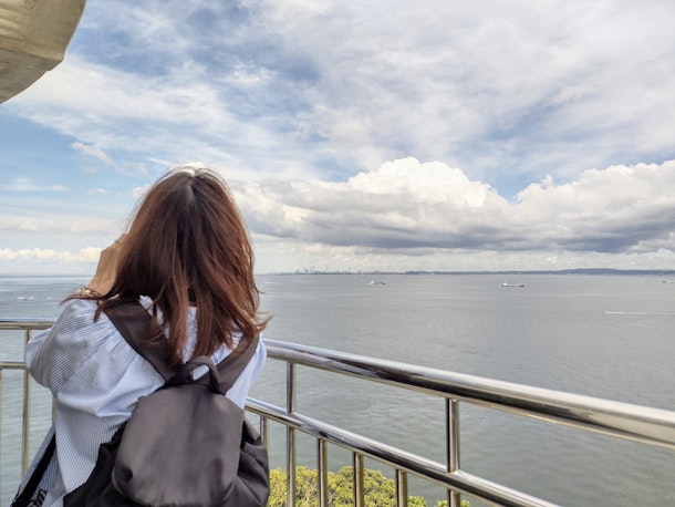 まずは観音崎灯台に昇って東京湾を眺めます。