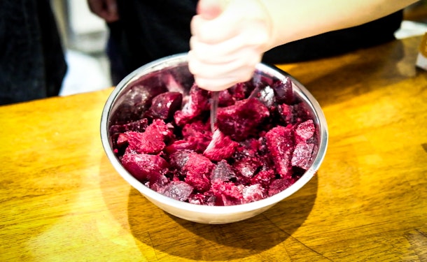 メニューは山梨と同じスムージーボウルですが、東京ではビーツとスイカの2本立てに。