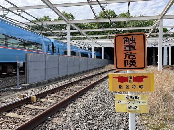 (喜多見検車区の構内を歩く時は車両の出入庫が多いため、指差称呼が必要です!)