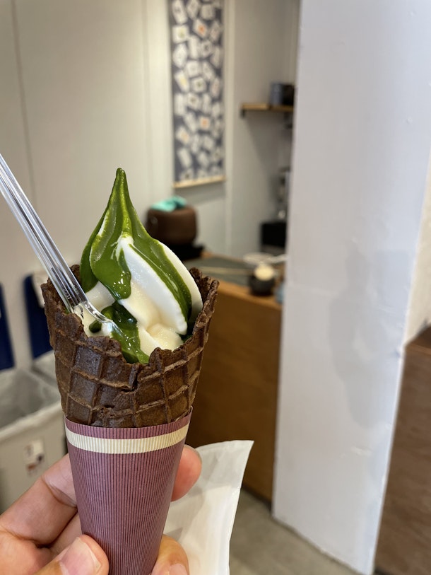 お茶屋さんが仕掛ける抹茶かけソフトクリーム他