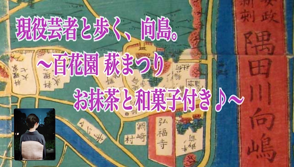 東京の花柳界を代表する『六花街』の一つでもある向島。昔から文人墨客に愛され、夕方になると芸者衆が行き交い、今でも下町らしい風景が見られる街です。百花園ではちょうど萩まつりが開催され、今回はお抹茶の飲み方などの簡単なレクチャーも含め、現役芸者が向島を案内します。