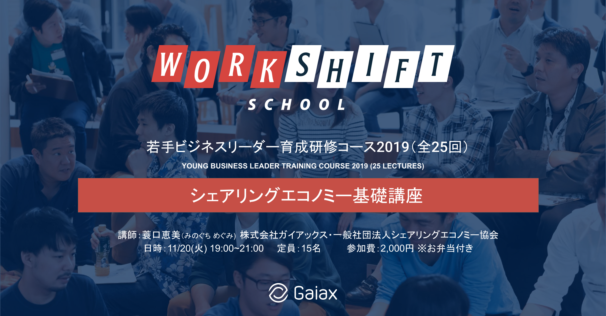【ゲストへのご挨拶】講師は、一般社団法人シェアリングエコノミー協会の蓑口さん。シェアリングエコノミーとは何か、基礎から学ぶことができる研修です。シェアエコの事例を通じて、シェアエコの未来についても考えることができます。~19:00 受付19:00~21:00 講座21:00~ 自由交流【料金に含まれるもの】お弁当代