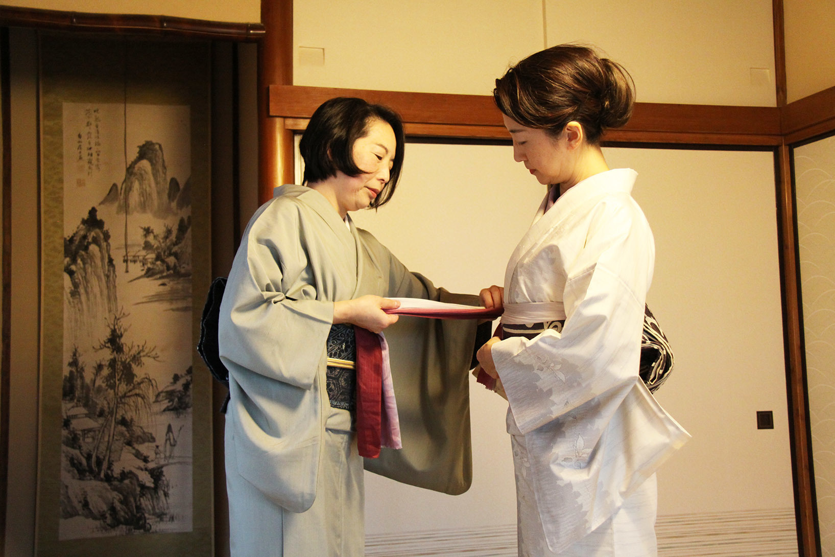 ※直接肌に触れる肌着はご持参ください。着物用のものをお持ちでない場合は、夏はキャミソールにスパッツ等、冬はヒートテックのようなシャツ(襟ぐりの広いもの)とスパッツ等をお持ちください。