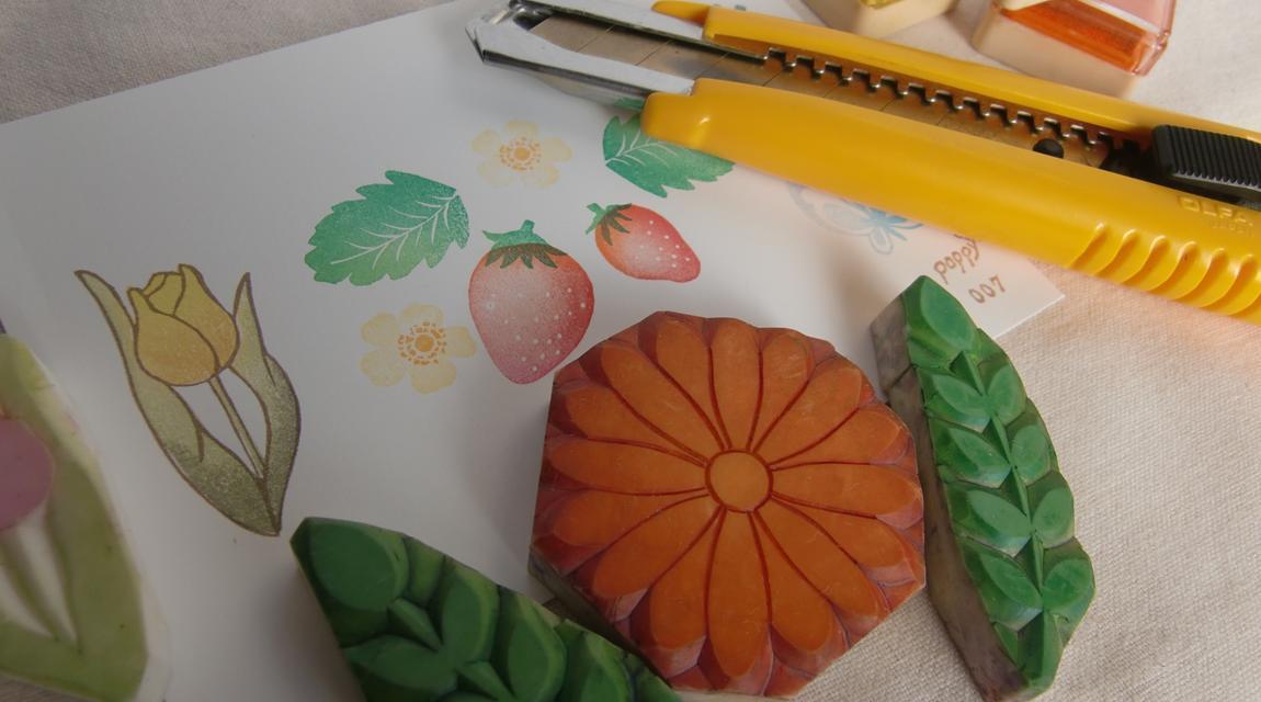 消しゴムはんこは、身近な道具だけで気軽にチャレンジできるハンドメイドです。